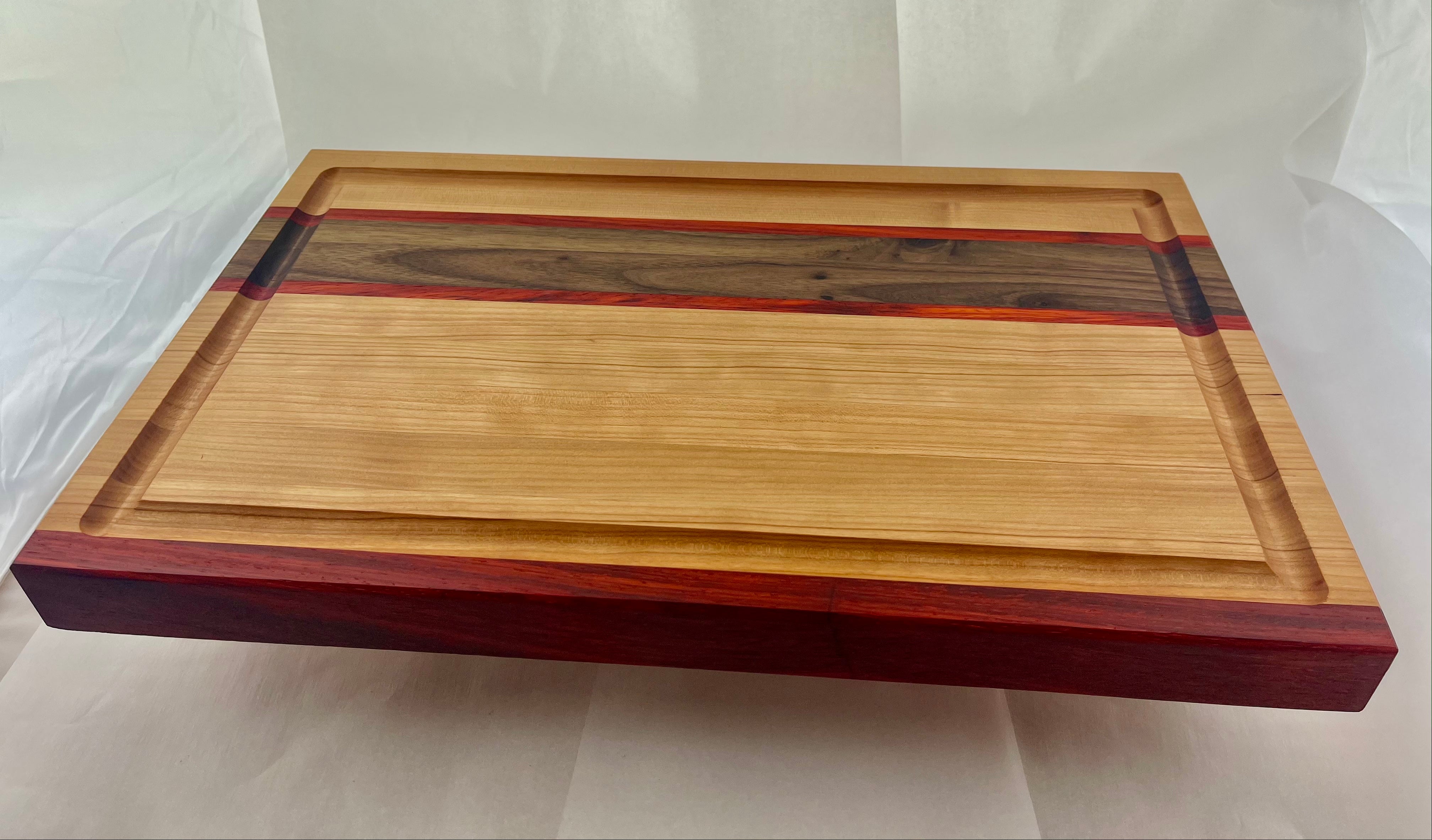 11"x18" Cherry, Padauk and Walnut Edge Grain Cutting Board