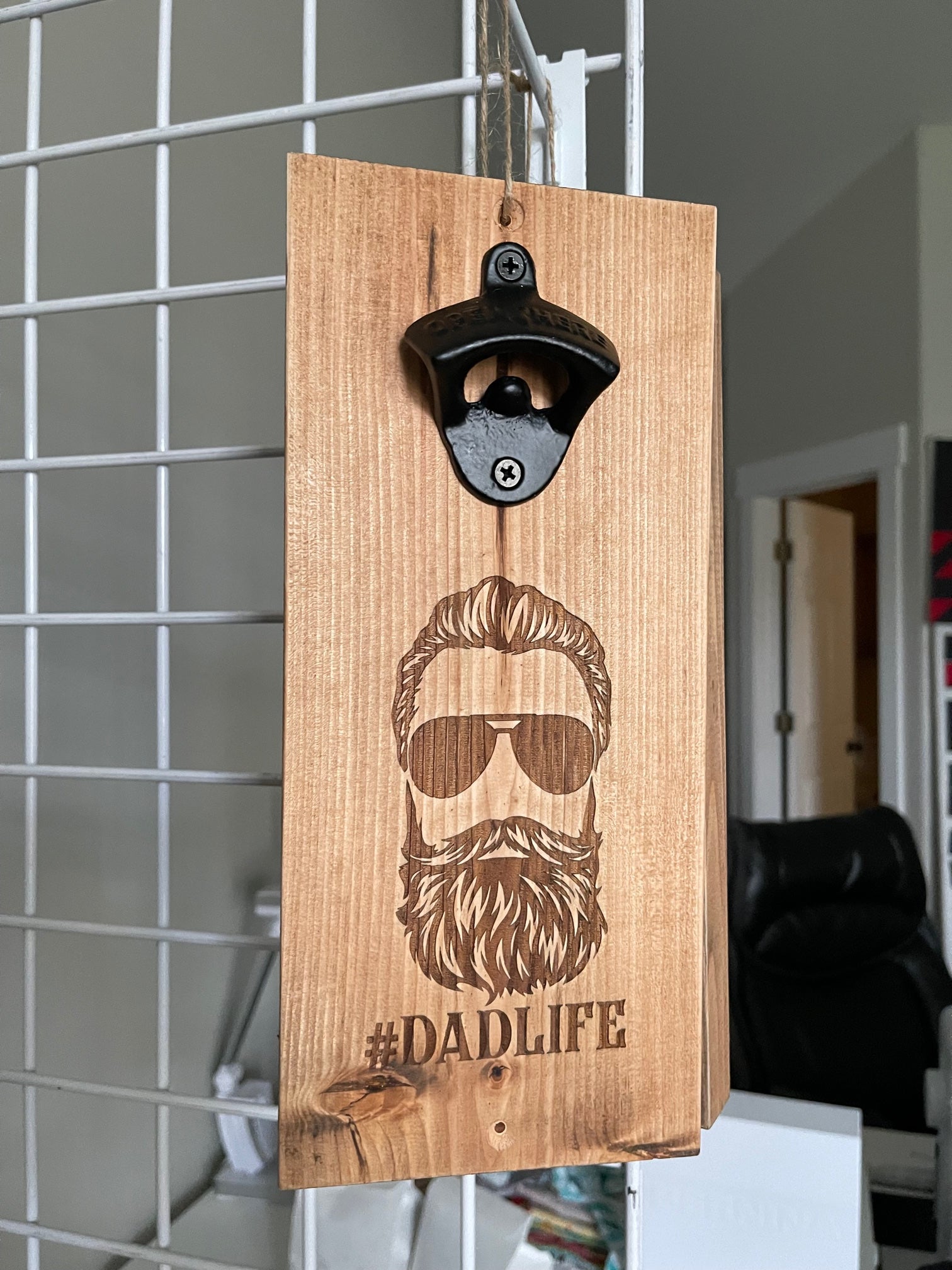 These bottle openers are made from abundant pine woods, and each one is laser engraved, assembled, stained and sanded by Alex directly here in West Haven, UT.