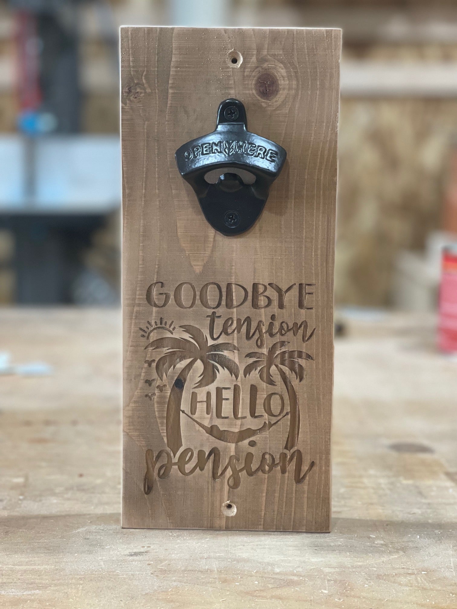 Goodbye Tension, Hello Pension Laser Engraved Bottle Opener