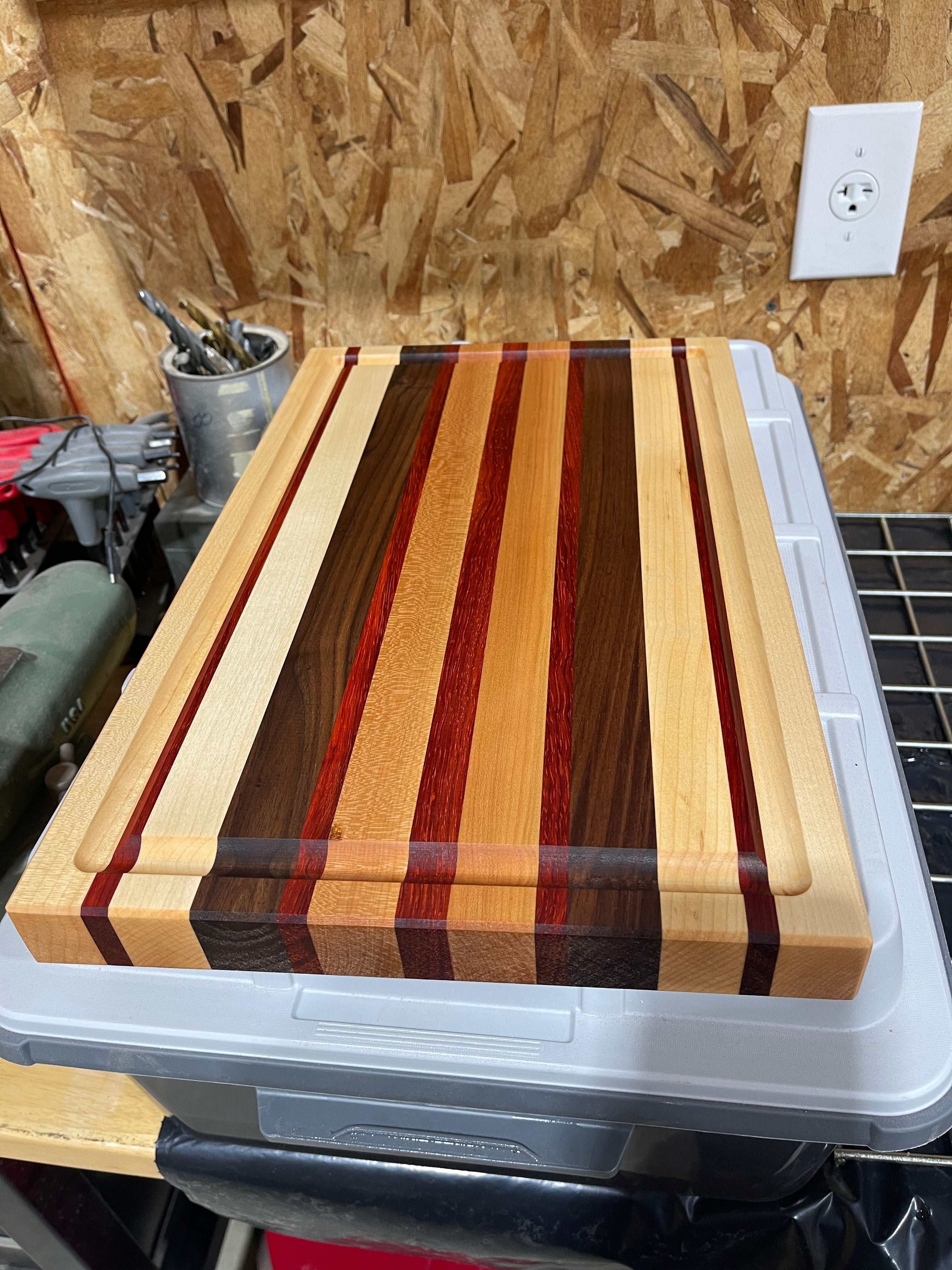 11.25"x18" Maple, Cherry, Padauk and Walnut Heart Edge Grain Cutting Board